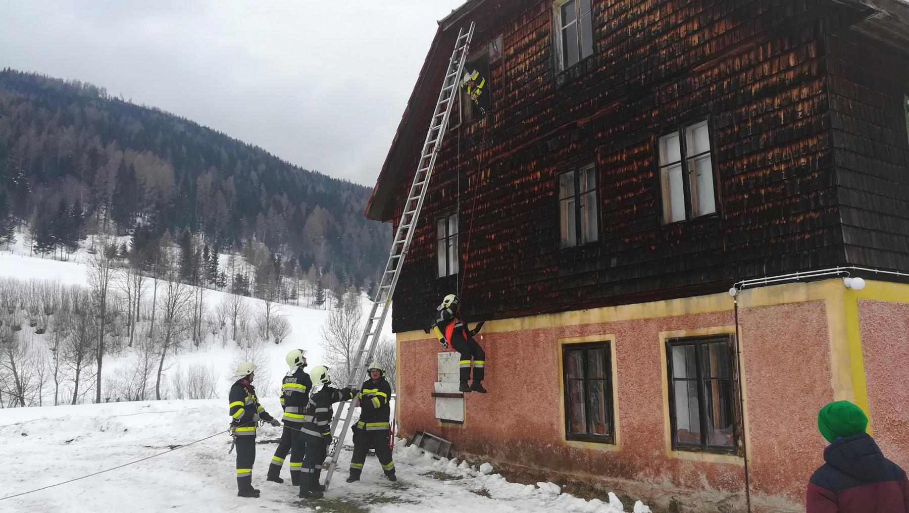 In einem leerstehendem Gebäude konnten unter realen Bedingungen Brandbekämpfung und Menschenrettung geübt werden.