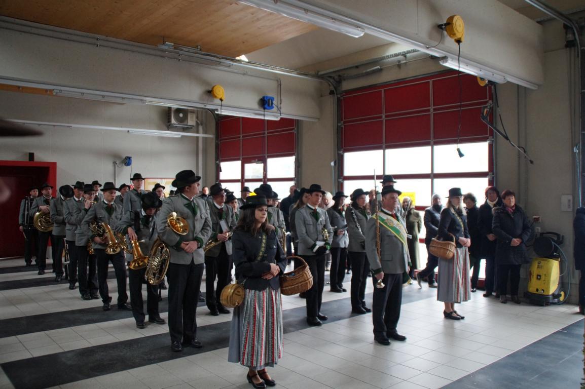 Aufgrund der widrigen Wetterverhältnisse marschierte die Feuerwehr Krakaudorf begleitet von Klängen der Schützennmusikkapelle Krakaudorf zum Rüsthaus, wo der weitere Festakt in der Fahrzeughalle vorgenommen wurde.